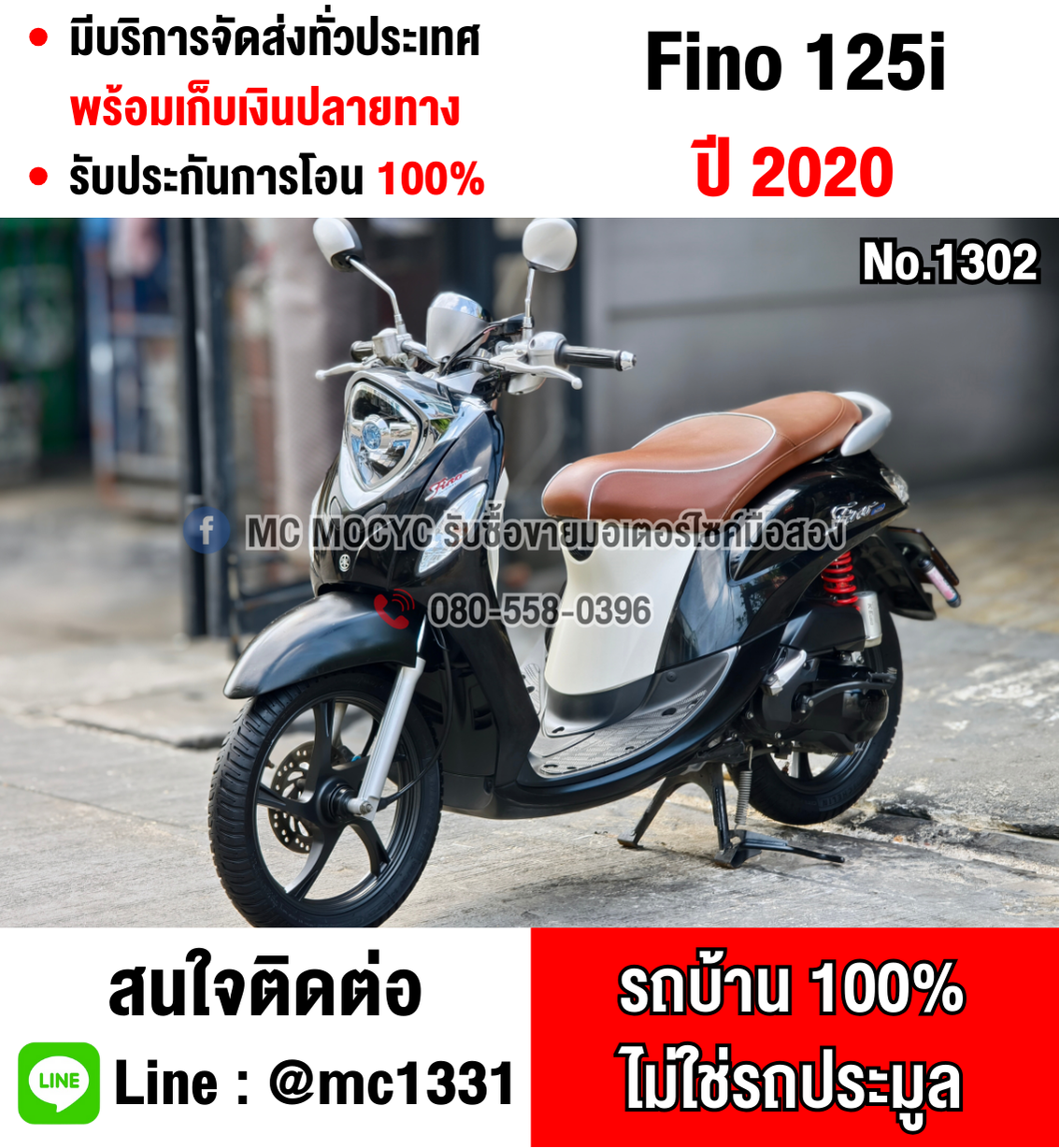 Fino 125i 2020 ตัวTopล้อแมค รถบ้านแท้ เครื่องท่อเดิมโช้คYss กุญแจบุคเซอวิสครบ NO1302 โทร 098-998-9824 โทร 080-558-0396 ID: @mc1331 (มี @ ด้านหน้าสุดครับ)
