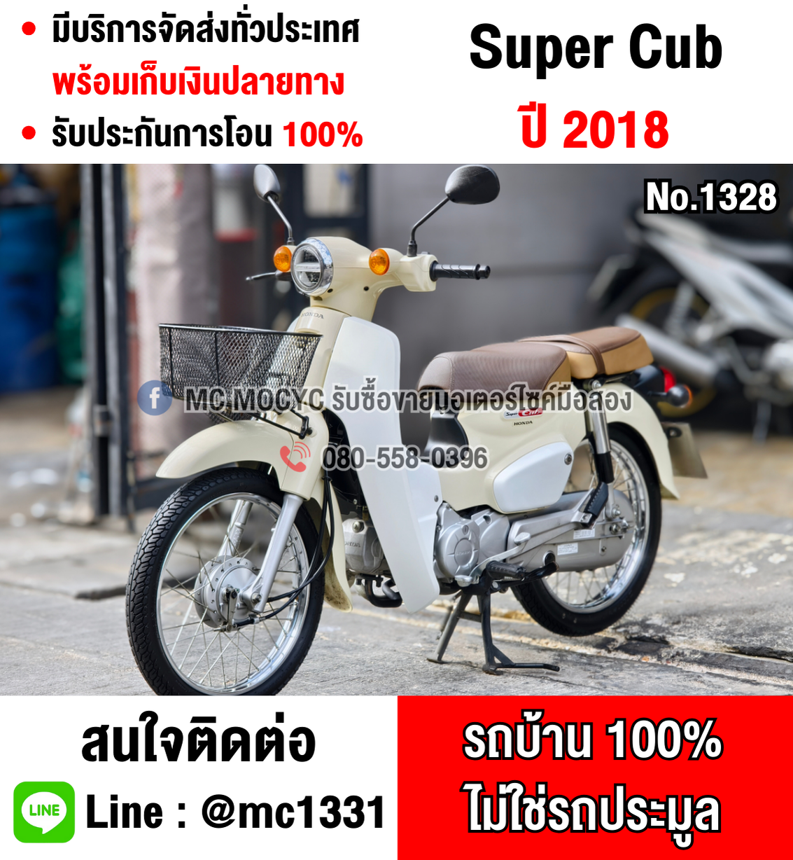 (มีคลิปรีวิวรถ) Super Cub 2018 วิ่ง20000โล สตาดมือ รถบ้านแท้เครื่องท่อเดิมๆ มีเล่มเขียวชุดโอนครบ No1328 โทร 098-998-9824 โทร 080-558-0396 ID: @mc1331 (มี @ ด้านหน้าสุดครับ)
