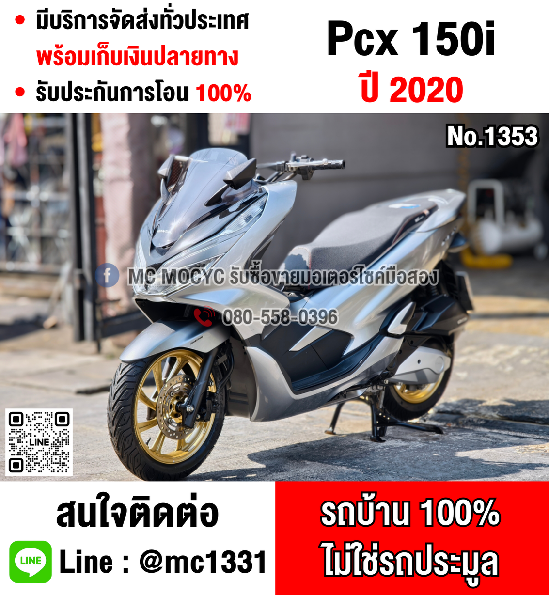 (มีคลิปรีวิวรถ) Pcx 150i 2020 วิ่ง20000โล กุญแจรีโมทบุคเซอวิสครบ รถบ้านแท้ไม่ใช่รถประมูล No1353 โทร 098-998-9824 โทร 080-558-0396 ID: @mc1331 (มี @ ด้านหน้าสุดครับ)
